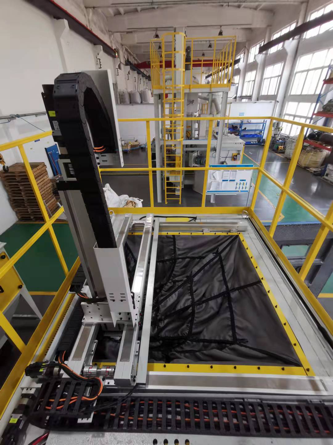 回轉支承結構平穩承重5噸以上,與四軸機械臂進行聯控。